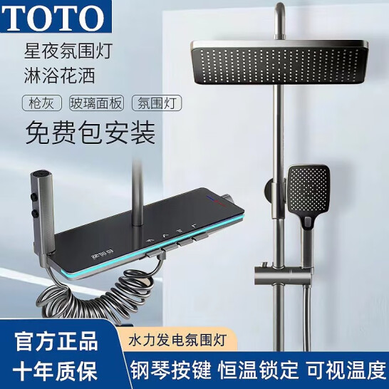 TOTO智能家居TOTO淋浴花洒套装枪灰色全铜数显恒温增压浴室卫生间 雅灰色-恒温版-包安装