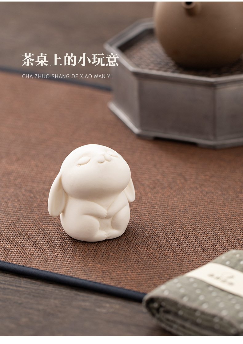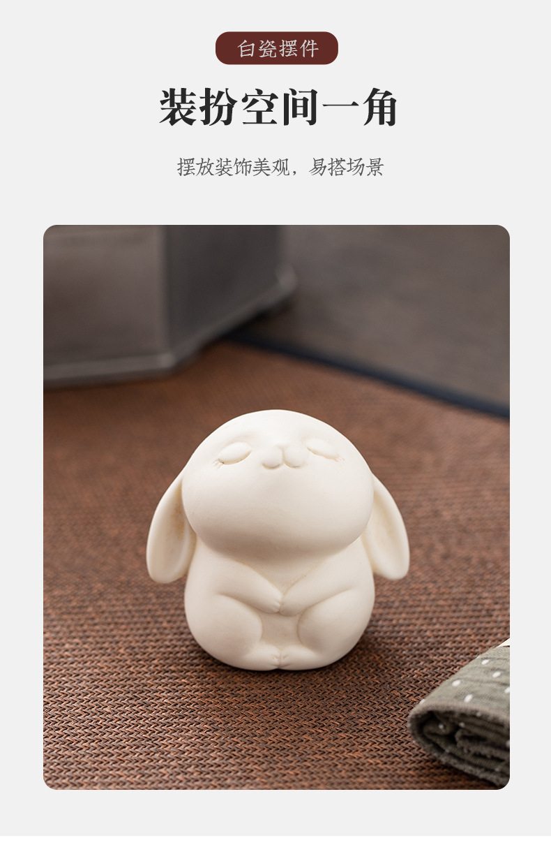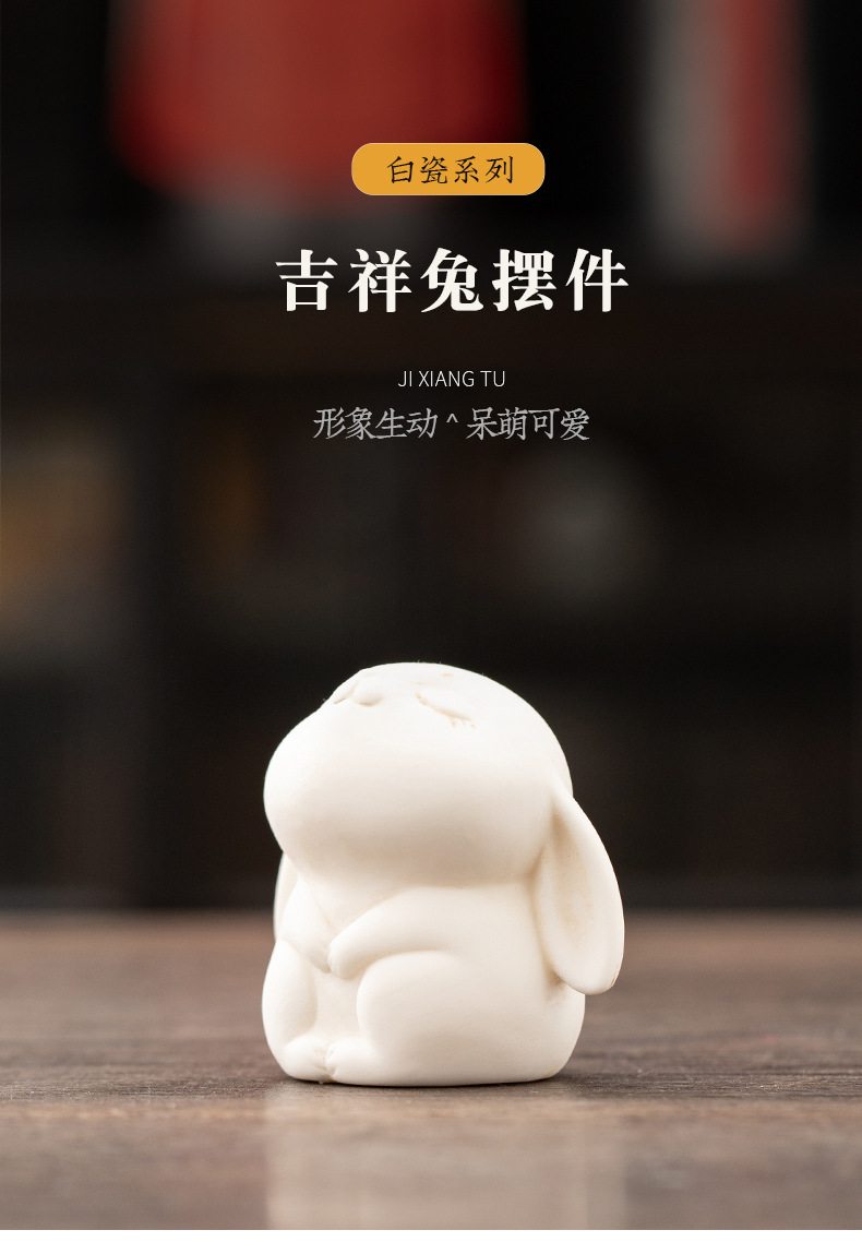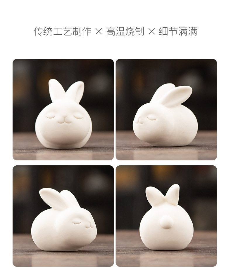 胖嘟嘟圆润迷你白兔陶瓷摆件 家居客厅桌面装饰品摆设活动奖励瓷器