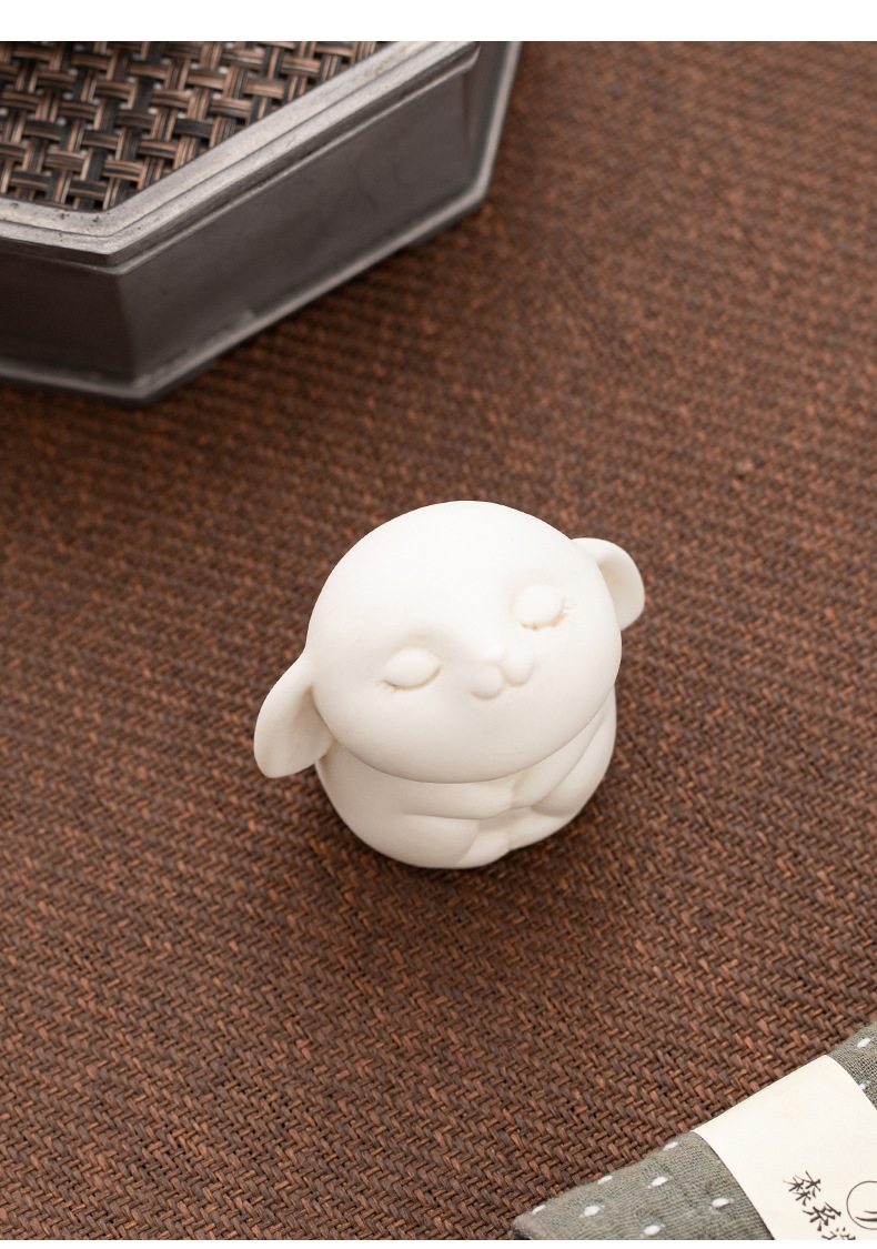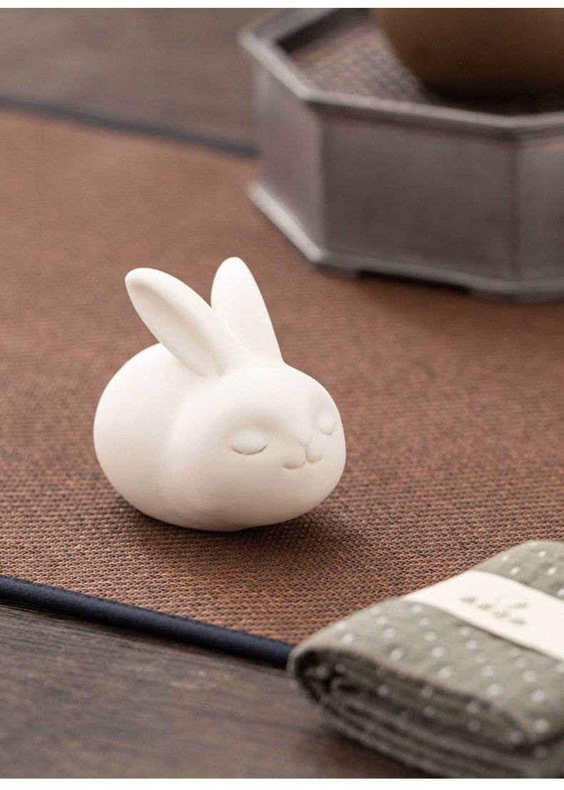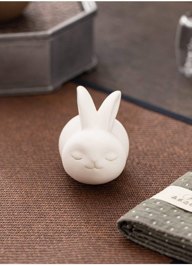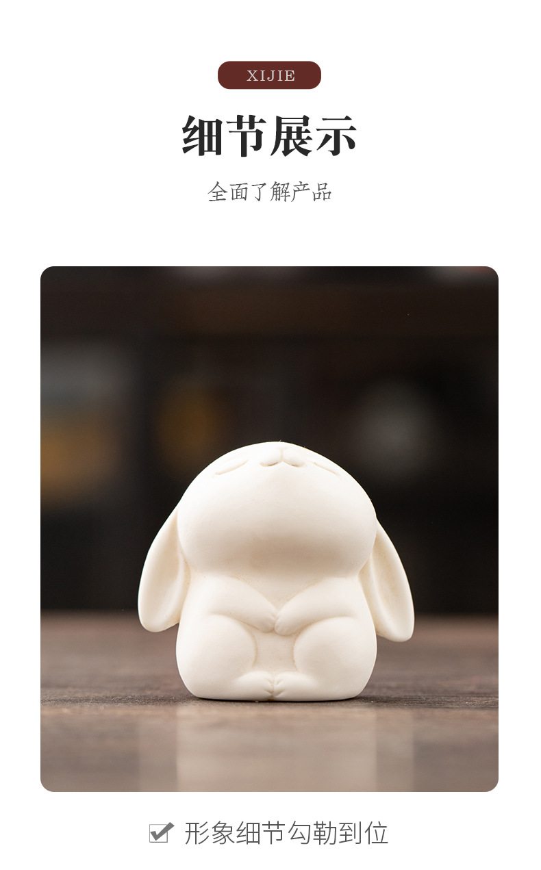 胖嘟嘟圆润迷你白兔陶瓷摆件 家居客厅桌面装饰品摆设活动奖励瓷器